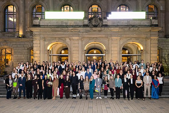 Die Fakultät für Geistes- und Kulturwissenschaften hat am 5. November 2022 erstmalig nach der Corona-Pandemie wieder die Absolvent*innenfeier im Großen Saal der Historischen Stadthalle Wuppertal gefeiert. Dort wurden auch dieses Mal wieder fast 100 Absolvent*innen der unterschiedlichen Studiengänge der Fakultät geehrt. Begrüßt wurden sie dabei von Dekanin Prof. Dr. Ursula Kocher, bevor die Prorektorin für Studium und Lehre, Prof. Dr. Susanne Buch, als Vertreterin des Rektorats einige Worte an sie richtete. Bei der anschließenden feierlichen Zeremonie nahmen die Absolvent*innen die Gratulation der jeweiligen Fachvertreter*innen entgegen. Musikalisch untermalt wurde die Ehrung vom BUW-Ensemble Talmates. Beim Sektempfang im Foyer der Historischen Stadthalle stießen die Absolvent*innen schließlich mit ihren Gästen auf einen erfolgreichen Studienabschluss an.