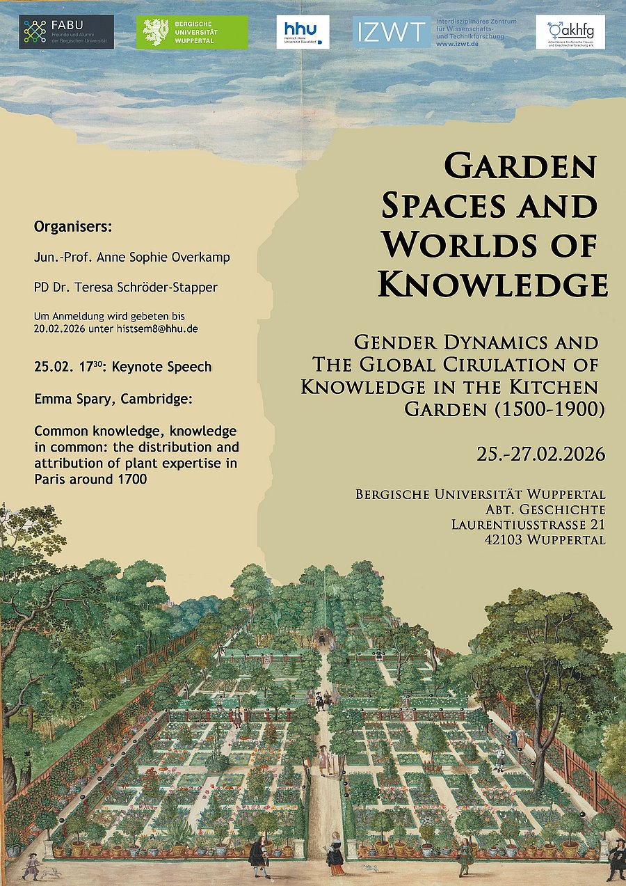25. Februar 2026 bis 27. Februar 2026: Internationale Konferenz: "Gartenräume und Wissenswelten: Geschlechterverhältnisse und globale Wissenszirkulation im Nutzgarten (1500-1900)"