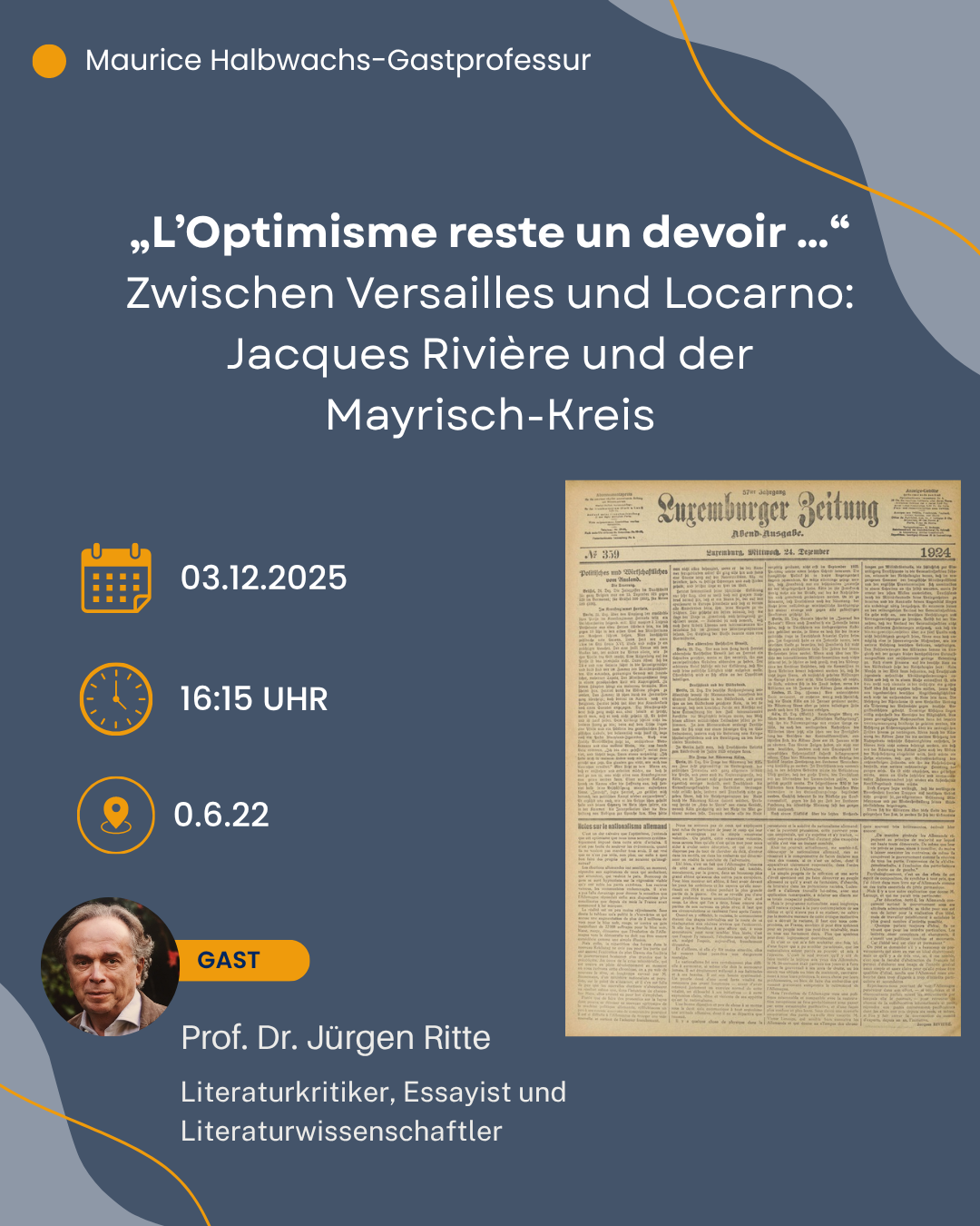 „L’Optimisme reste un devoir …“ Zwischen Versailles und Locarno: Jacques Rivière und der Mayrisch-Kreis mit Prof. Dr. Jürgen Ritte.